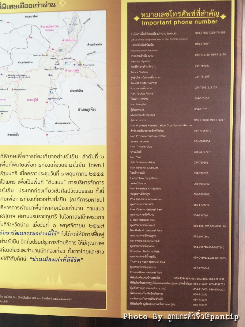 พอดีเจอป้ายนี้มา อาจจะมีประโยชน์นะคะ เป็นเบอร์โทรศัพท์ที่สำคัญในจังหวัดน่านค่ะ