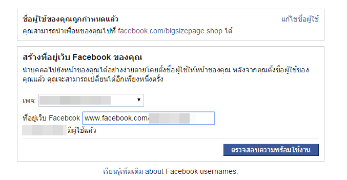 ผมได้ลองเช็คชื่อผู้ใช้ของทางเพจ facebook ชื่ออื่น ที่