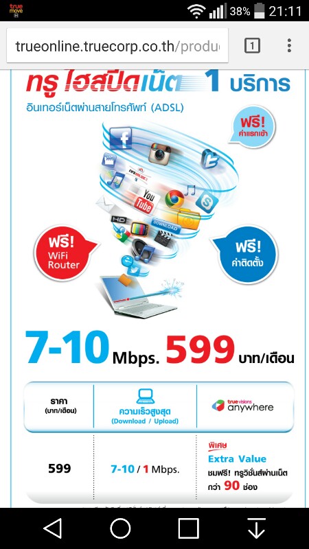 พอดีผมใช้ ADSL ของ Trueonline Speed 13/1 M ครับ แต่สำหรับลูกค้าใหมัจะได้รับสิทธิ์ดู Truevisions Anywhere ด้วย