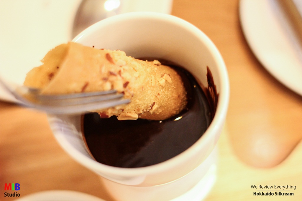 มาพูดถึงเมนูที่สั่งไปวันนี้ เมนูแรกชื่อว่า Hokkaido Fondue ประกอบไปด้วยไอศครีม ช็อคซอส ขนมคล้ายๆทองม้วนสองอัน และผลไม้เอาไว้จิ้มทานคู่กับไอศครีมและช็อคซอส
