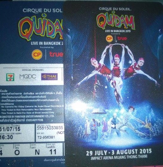 ขายบัตร CIRQUE DU SOLEIL QUIDAM ศุกร์ ที่ 31/7 รอบ 16.30 นัดรับบีทีเอสได้เลยค่ะ