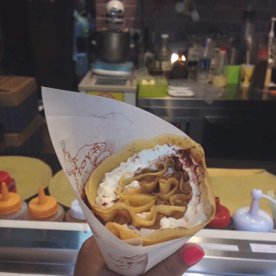 แล้วก็ต่อด้วยของหวานเป็นเครปเย็นที่พ่อค้าแซ่บไม่ค่อยมาก(เพราะมีเมียแล้ว)ว่าไปนั่น กินคู่กับชาพีชที่ร้านตัดเลี่ยนอร่อยมากคะ ของเราเป็นทีรามิสุ
