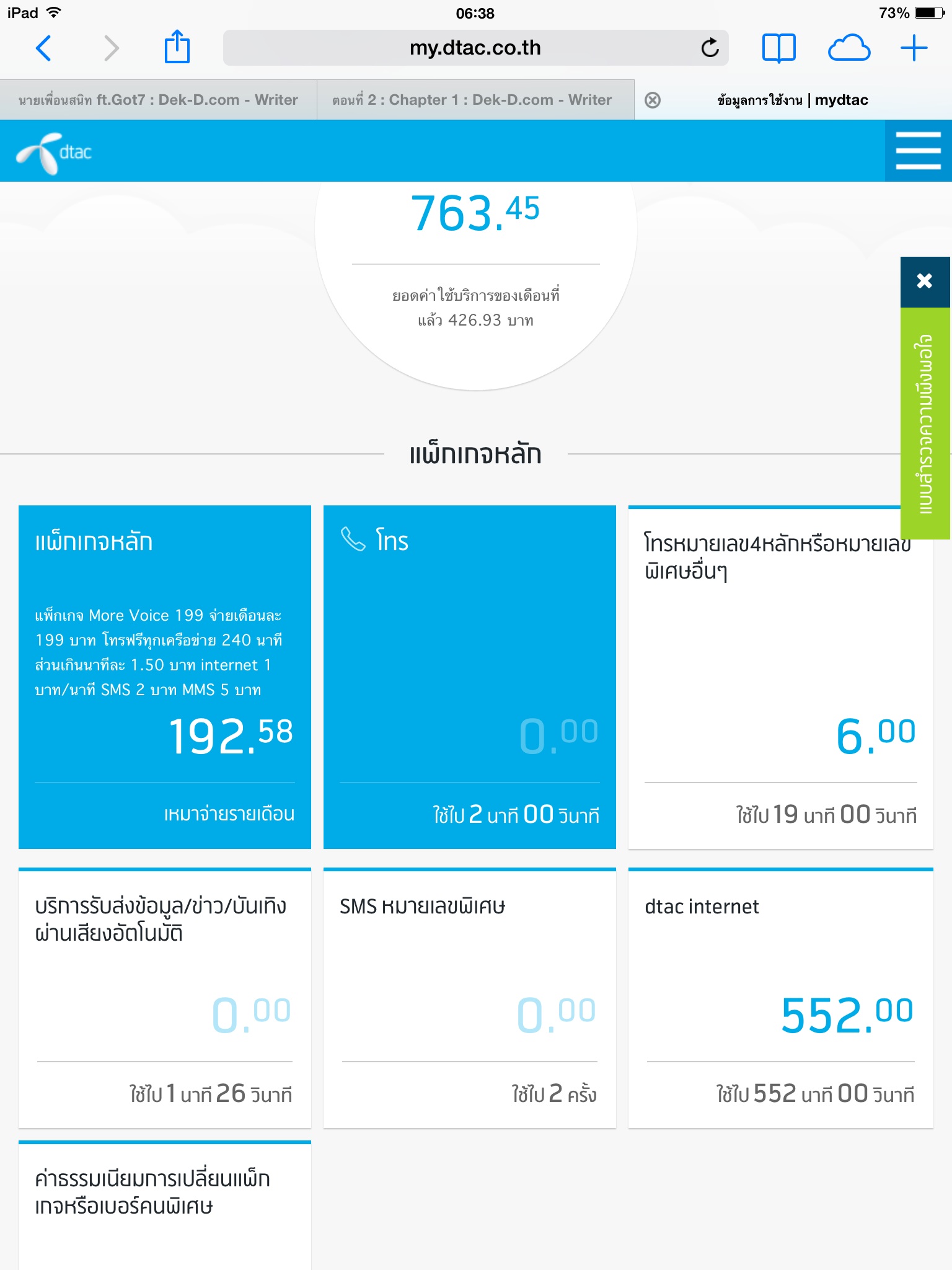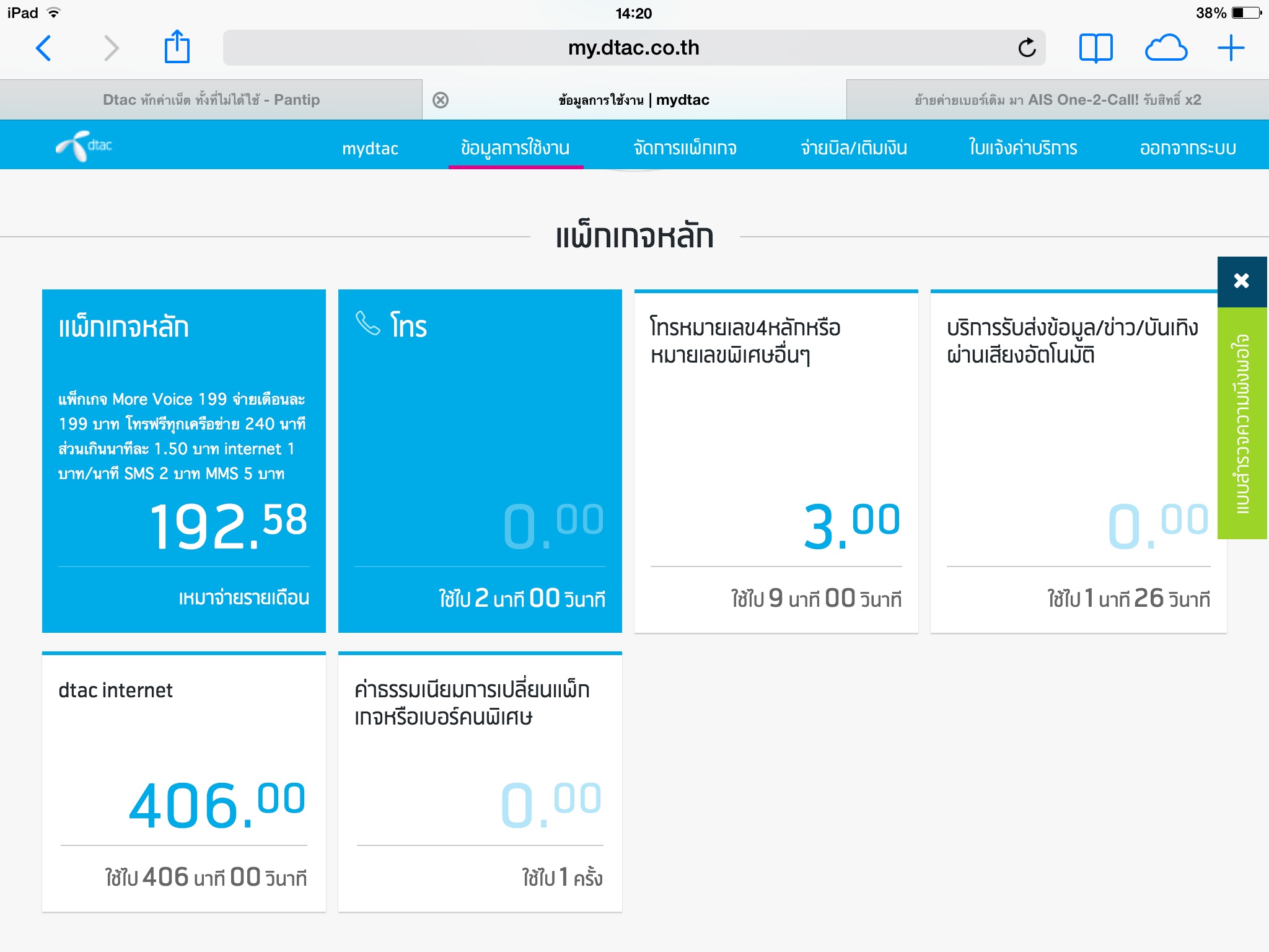 บ่ายสองเราเข้าไวไฟจากที่บ้านพบว่ายอดค่าใช้จ่ายอินเทอร์เน็ตเราอยู่ที่ 406 บาทเราโทรเข้าศูนย์อีกครั้งเค้าบอกว่าตัดสัญญานไปแล้วเมื่อ 9 โมง