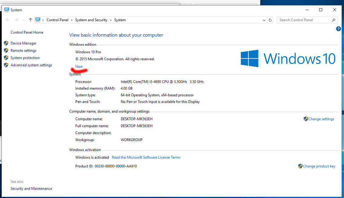 ลงวินโดว์ 10 ใหม่(หลังจากอัพเกรดแล้ว)ปรากฏว่ายังมีคำว่า next อยู่เลย
