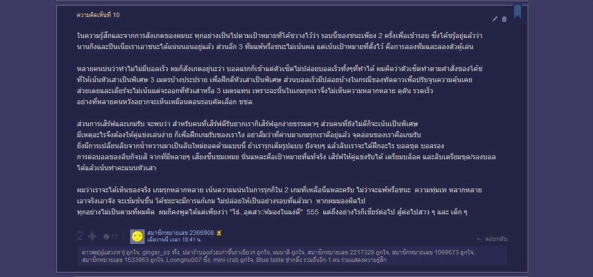 ต้องขอนุญาตเอาข้อความที่เคยแสดงความเห็นไว้ในกระทู้ของคุณ "ทีมเชียร์ชาติไทย" มารบกวนสายตาหน่อยนะครับ ไม่ได้เอามาอวดว่าตรูเก่ง คาดการณ์แม่น แต่ที่เอามาให้อ่านเพื่อจะบอกว่า เห็นแบบนี้แล้วยิ่งทำให้มั่นใจว่า ในการชิงแชมป์โลก U23 ที่จะถึงนี้ แฟนๆ เชียร์ขาดใจเลยครับ