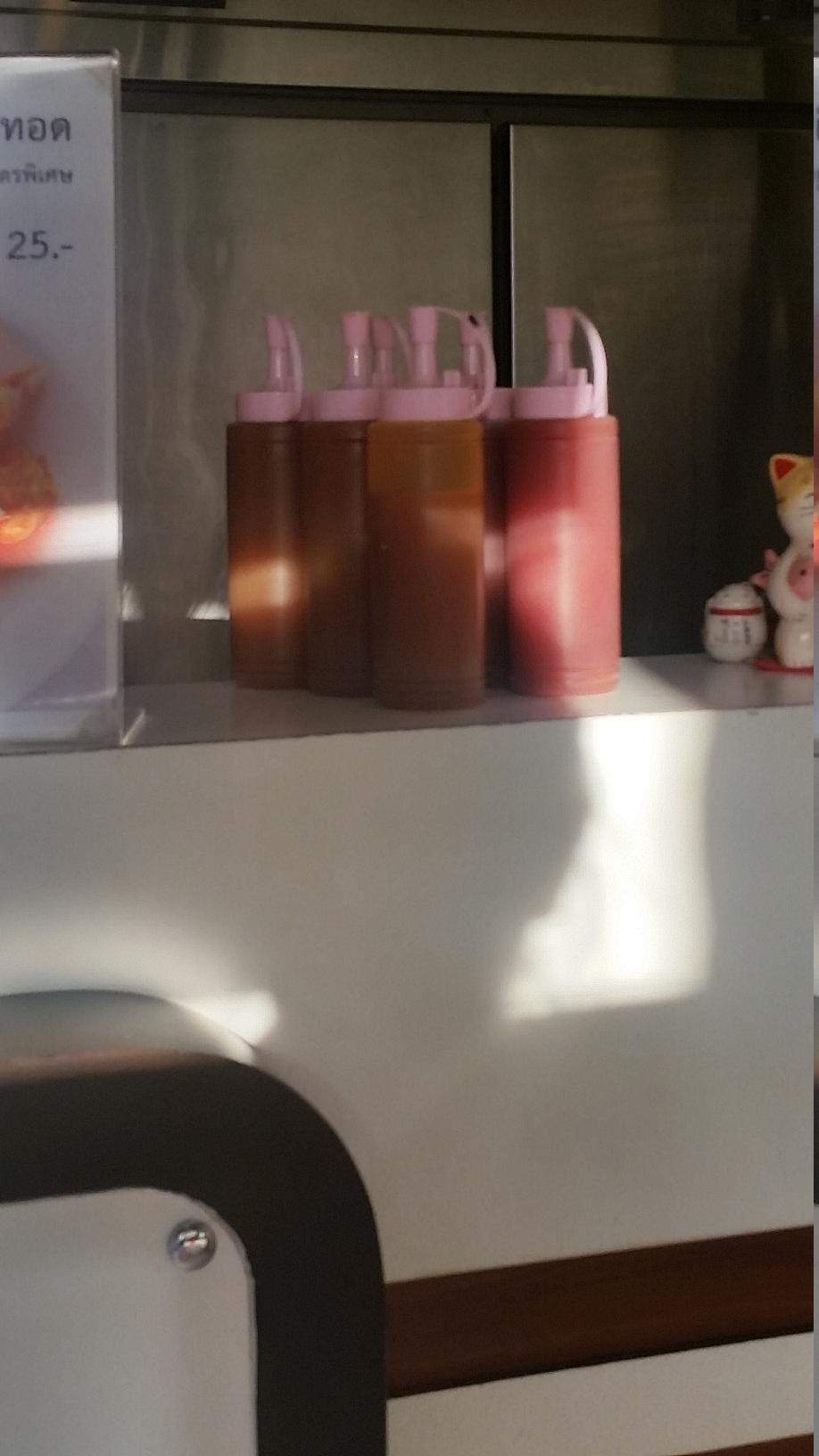 ที่ร้านเค้ามีบริการซอสให้ เป็นซอสมะเขือเทศกับซอสพริก เผื่อคนไทยติดการจิ้มด้วยครับ (ผมลองกินแล้วรสชาติไม่เข้ากันแรงงง เครื่องเทศกับซอสมะเขือมันไม่ใช่อ่ะค่ะ)