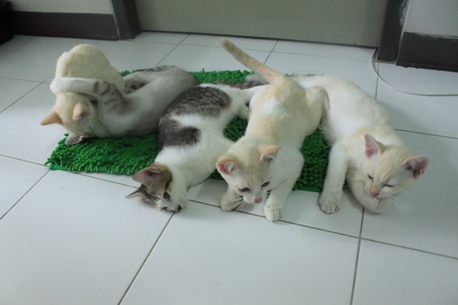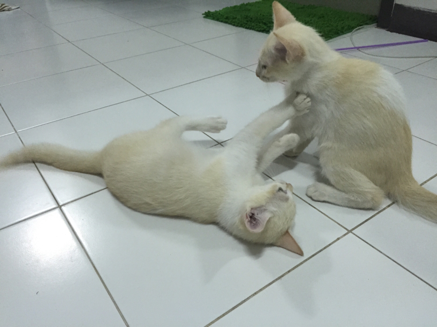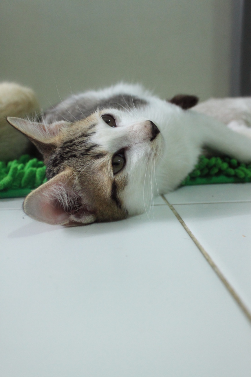 เรื่องมันเริ่มมาจากประมาณ 5 เดือนก่อน เผลอไปเล่นกับแมวสาวนางนึง ที่หน้าตึกที่อยู่ครับ (ผมอยู่เอื้ออาทร) นางก็ออดอ้อนตามประสา ทีนี้พอเดินหนี นางเดินตาม เห็นผอมๆ กรังๆ เลย ให้นมกิน พอท้องอิ่มนางก็ไม่ไปไหนครับ ไล่ก็ไม่ไป เอาออกไปนอกห้องก็วิ่งกลับมาหา ยอมใจนางครับ เลยรับเลี้ยงไว้