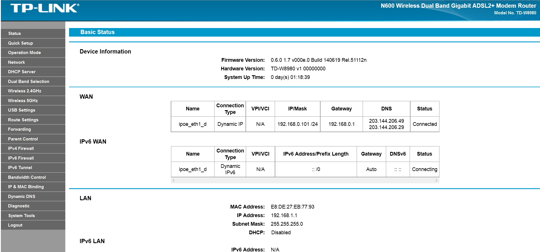 ชั้นล่างลากสายจากชั้นบน มาใส่ช่อง WAN ของ TP-LINK TD-8980 ตั้งโหมดเป็น "Wireless Router Mode" เนตใช้ได้ทั้งเครื่องชั้นล่างและชั้นบน