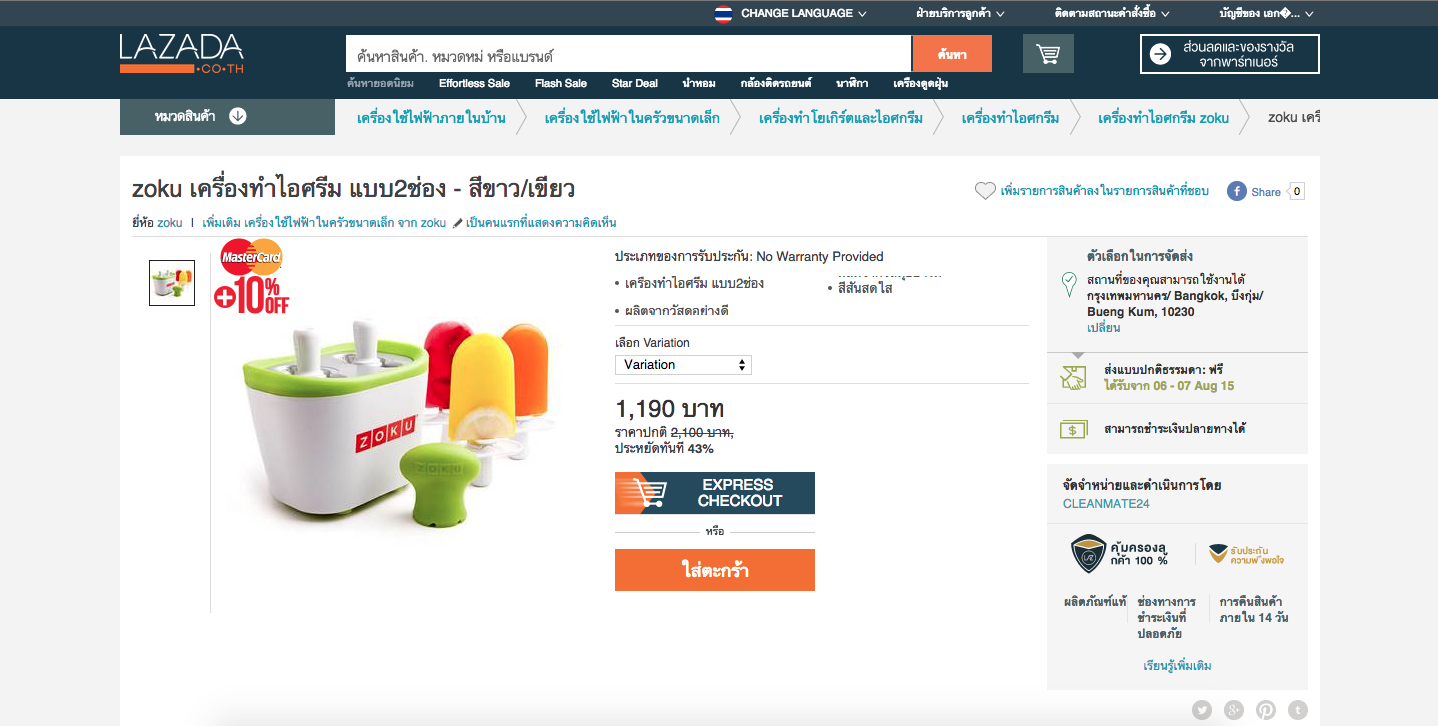 ซื้อบล็อคทำไอศครีม Zoku Quick Pop Maker มาจาก Lazada ครับ