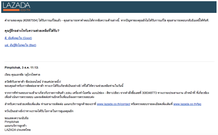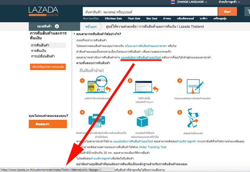 เอกสารใบเสร็จไม่มีให้เลยตอนสินค้ามาส่ง ส่วนทางหน้าเว็บก็มีลิงค์ให้ "กรอกแบบฟอร์มการคืนสินค้า" แต่ลิงค์ก็ไปผิดที่