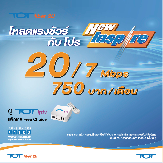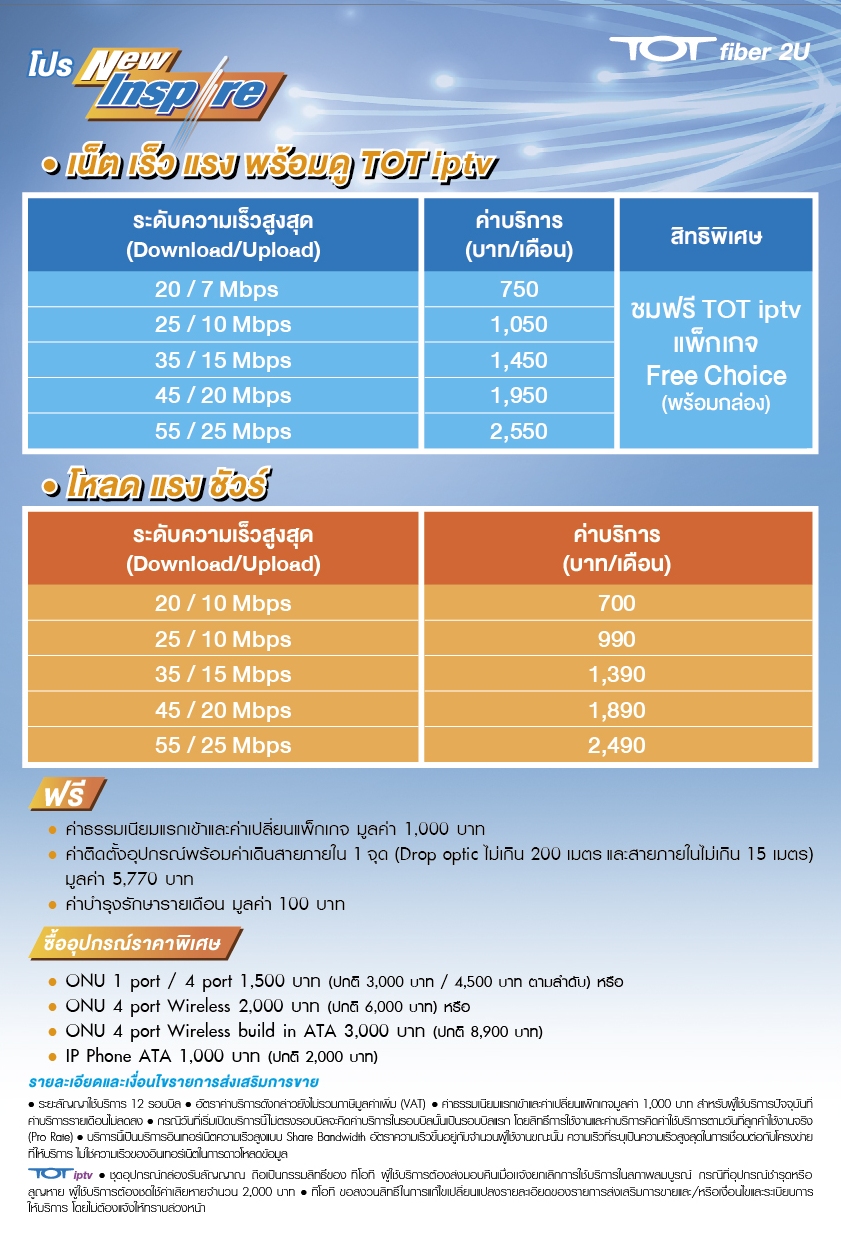 สอบถามโปร TOT Fiber2U Bluespeed ครับ