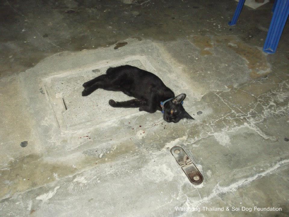 พร้อมทั้งไปอาละวาดหน้าบ้านเพื่อนบ้านเกี่ยวกับแมว (ดูในคลิปที่ 1) และชายชุดดำก็ได้ทำการขว้างลูกแมวที่บาดเจ็บไปที่ลูกกรงเหล็กของเพื่อนบ้านซ้ำอีกรอบ