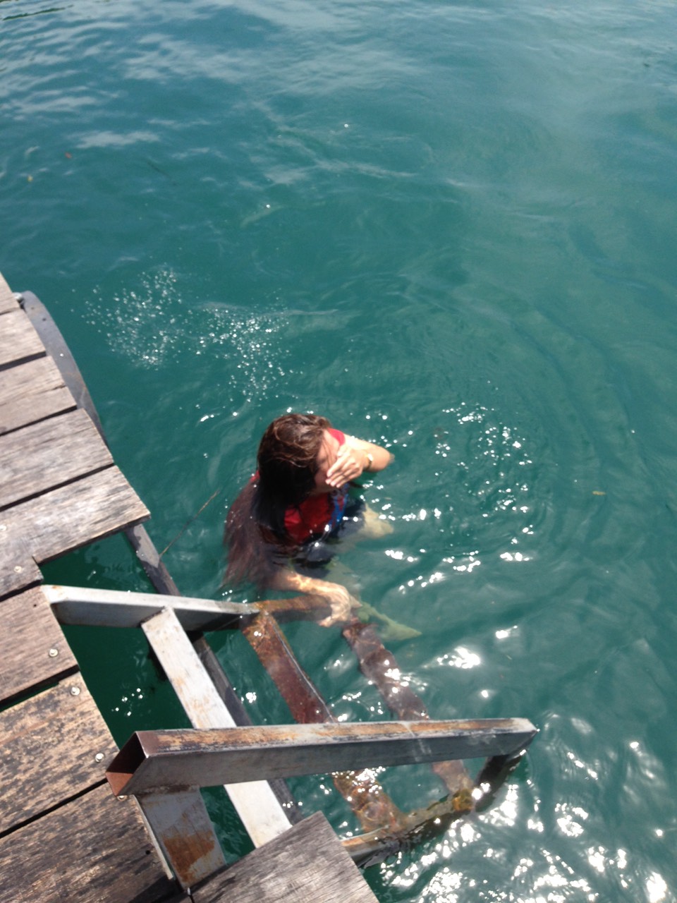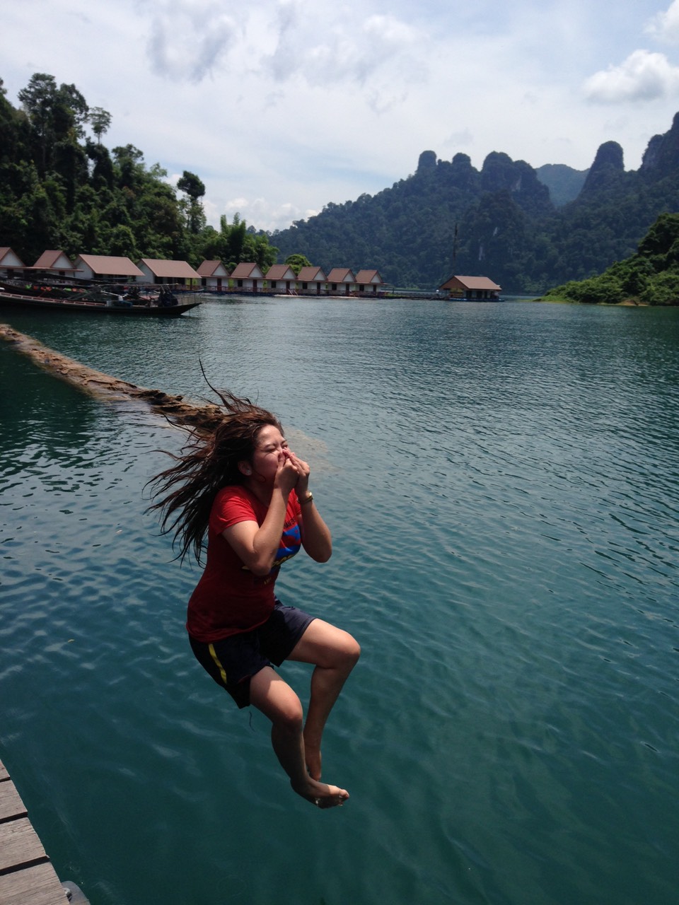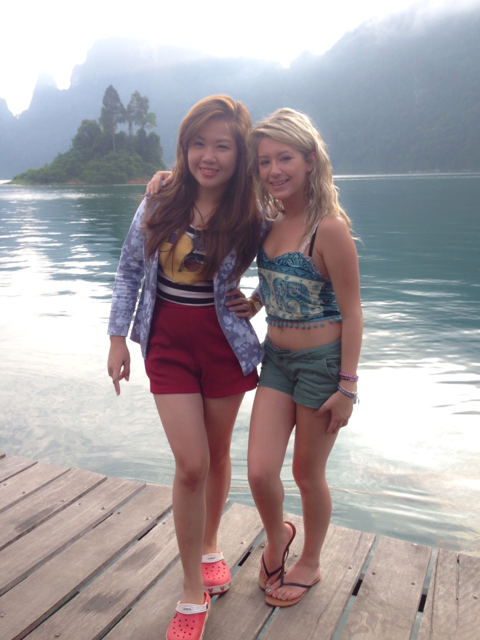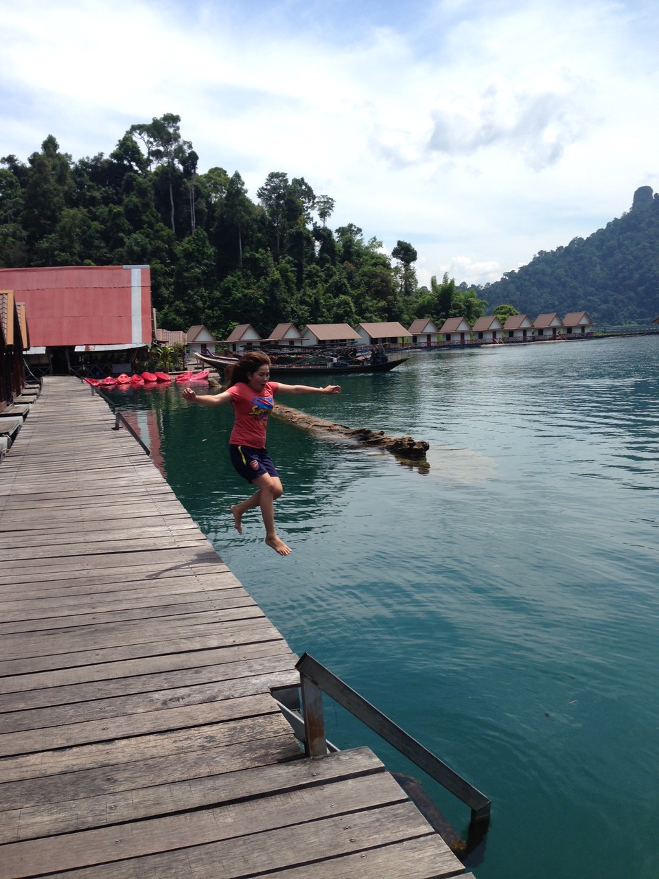 มาถึงแพเราก็จะพบกับหมู่คณะชาวต่างชาติที่มาจากแคนนาดา เป็นนักศึกษายังวัยรุ่นกันอยู่เลย(ต้องขอบอกว่าน่ารักทุกคน) เราจะมีความรู้สึกเหมือนอยู่ในป่าหิมพานต์ ที่มีหมู่กินรีว่ายน้ำ555555