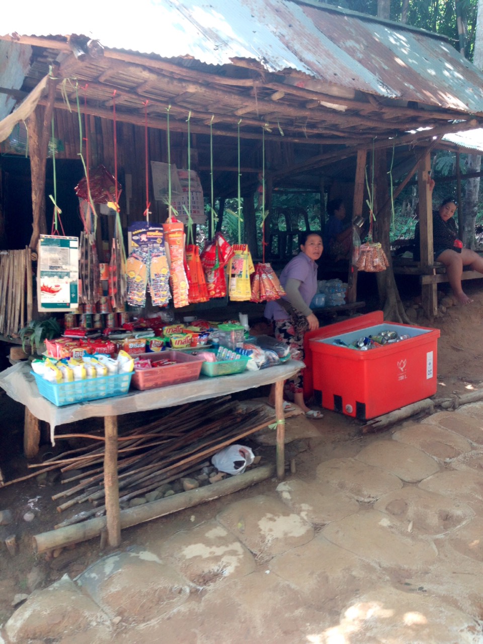 นี่คือจุดจอดเรือที่แรก ก็จะมีร้านขายของไว้สำหรับนักท่องเที่ยว แต่ลุงชาเตรียมน้ำไว้สำหรับเราสองคนแล้ว