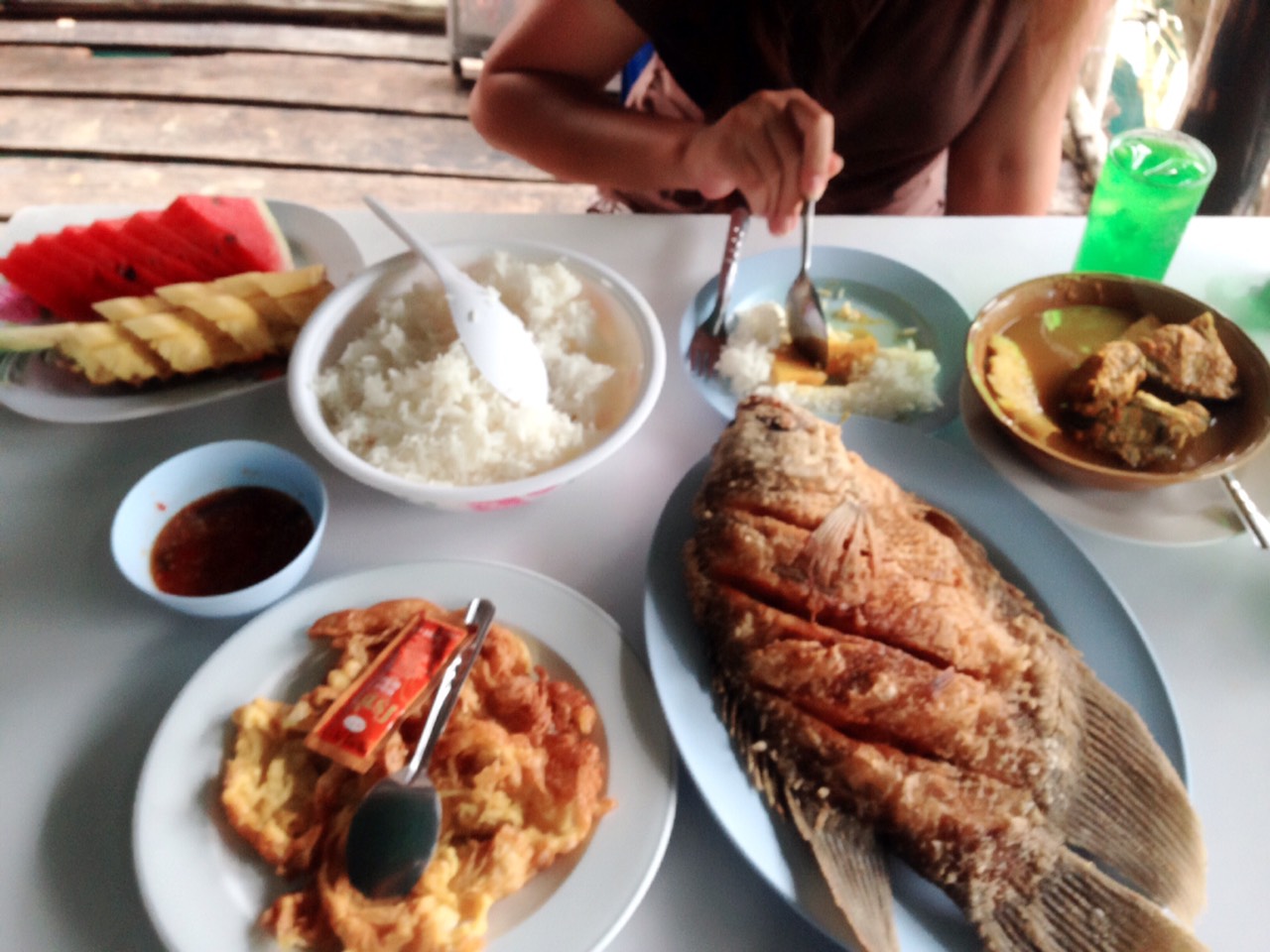 ถึงเวลากินข้าวเย็น 6โมงครึ่ง แต่เราหิวก่อนตั่งแต่6โมง จึงเดินไปคอย พี่เจ้าของแพก็ใจดีบอกว่าถ้าหิวเดี๋ยวเค้าเตรียมให้เราด่อนได้เลย ผมหยิบกล้องไปด้วยแหละ ลืมบอกไปว่าอาหารทุกอย่างสามารเติมได้ตลอดรวมถึงผลไม้ด้วย