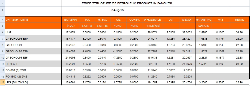 แต่อย่างที่รู้ แค่ภาษีสรรพสามิต VAT กองทุนน้ำมัน ก็บวกเข้าไปอีก7-8บาทแล้ว ค่าการตลาดประมาณ1.50-2บาท