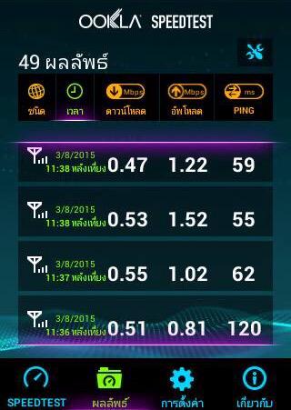 3G สูงสุดที่เคยวัดได้ 2-3 Mbps ครั้ง สองครั้ง จากนั้นก็กลับมาวิ่งตามรูป