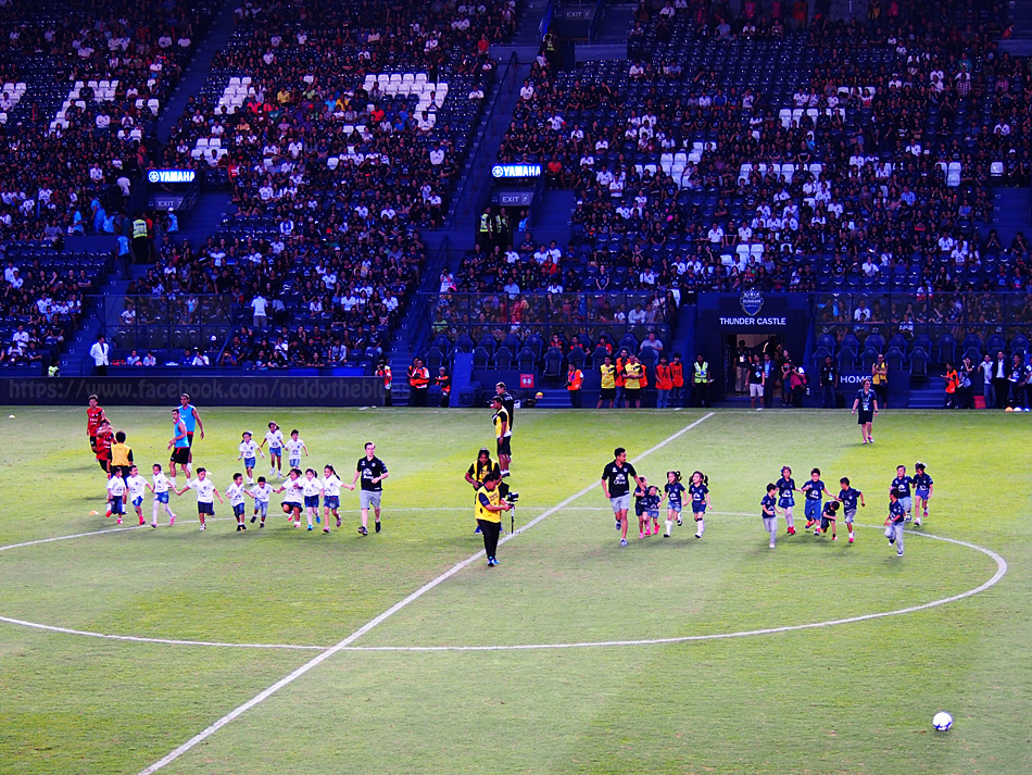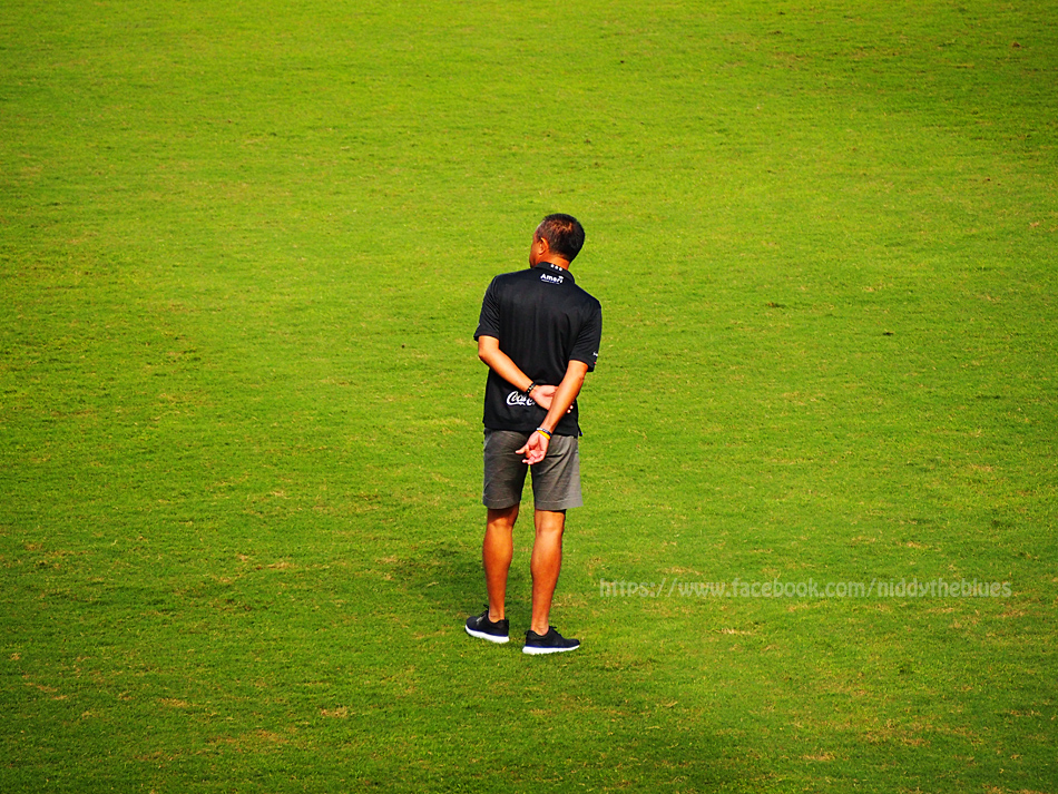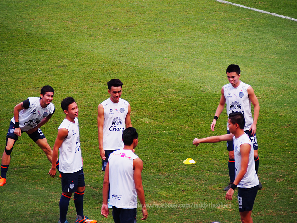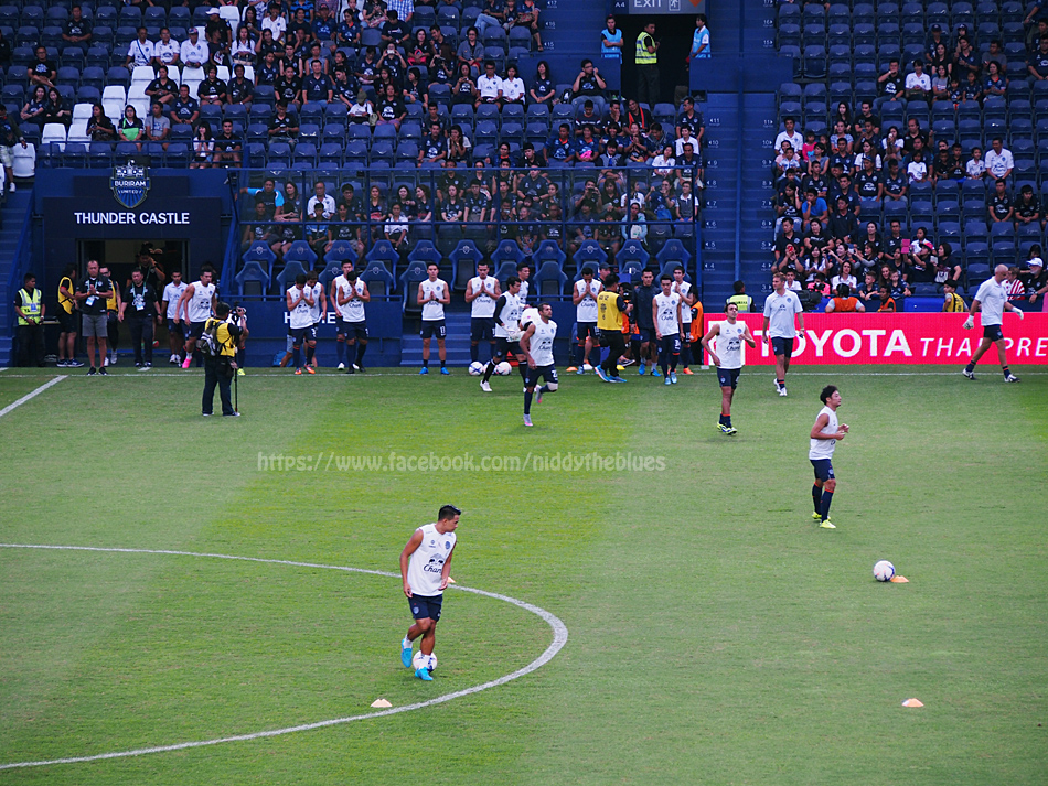 ไม่นานนัก นักเตะบุรีรัมย์และทีมโค้ชก็ลงสนามเพื่อซ้อม นำโดยประธานสโมสร เนวิน ชิดชอบ (ลุงไม่ได้เดินนำนะ ลงมาทีหลัง เดินตามนักเตะต้อยๆเลย)