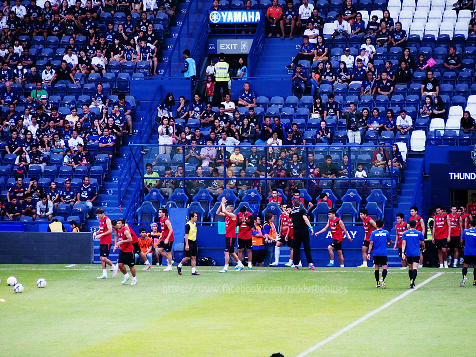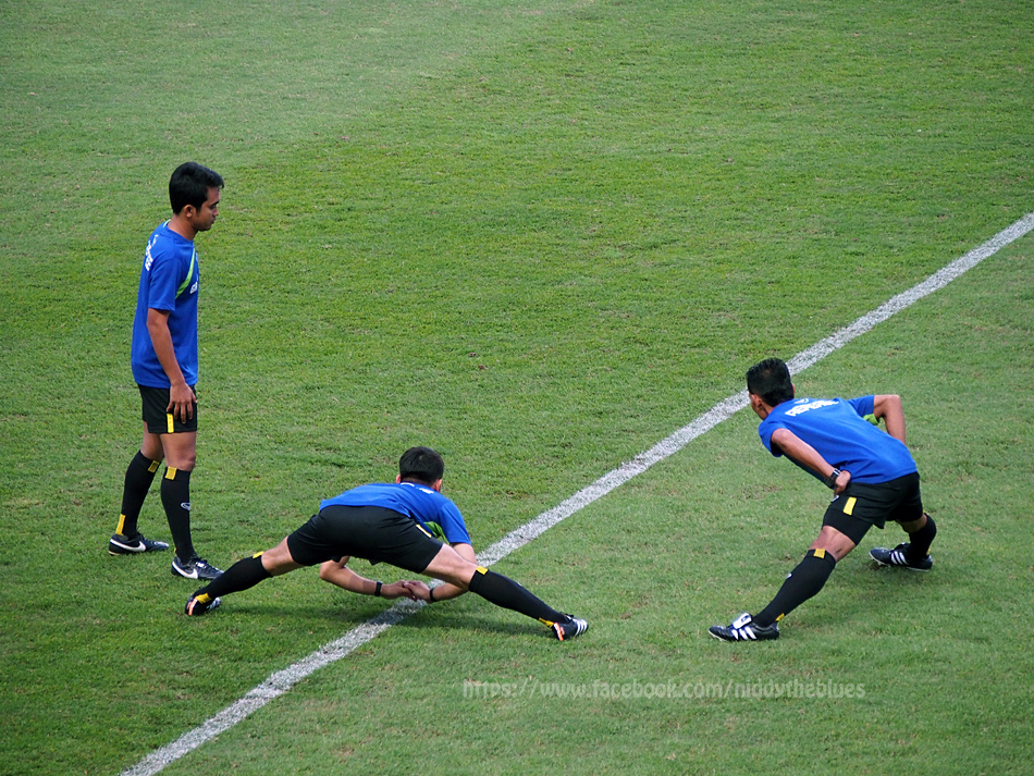 ช่วงที่ผู้ตัดสินทั้ง 3 คนลงมาวอร์ม แฟนบอลเงียบกริบทั้งสนาม ... ไม่รู้ว่าเป็นการให้เกียรติผู้ตัดสิน หรือกำลังงงว่านักเตะทีมไหน ทำไมหน้าตาไม่คุ้น