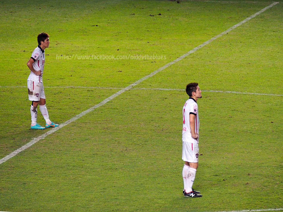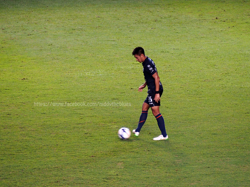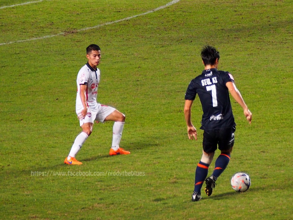 ธีราทร บุญมาทัน และกรวิทย์ นามวิเศษ นักเตะที่จับภาพได้บ่อยที่สุด เพราะยืนอยู่ฝั่งที่นั่งอยู่ในครึ่งแรก ... ดูสิเนี่ย กรวิทย์ยังเมินหน้าใส่กล้อง เซ็งเลย