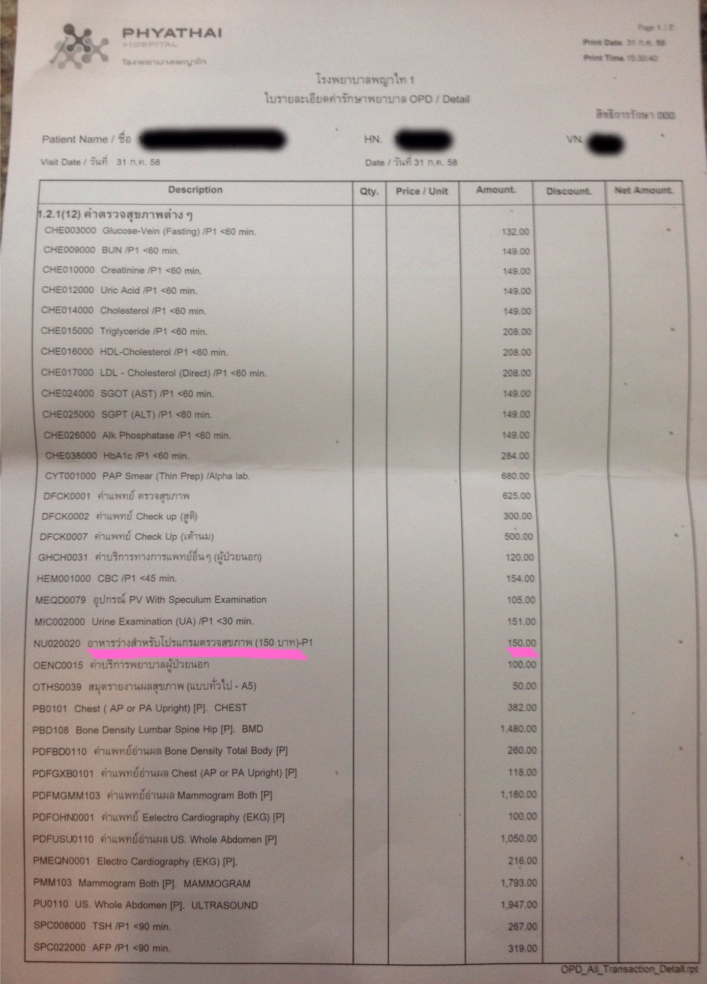วันหยุดที่ผ่านมาได้พาแม่ไปตรวจสุขภาพรพ.แถวถ.ศรีอยุธยา เลือกแพ็คเก็จใหญ่ 14,500 บ. พนง.ยื่นคูปองอาหารมูลค่า 150 บ. พนง.บอกว่าฟรี ยังย้ำเล่นๆเลยว่า... ฟรีเหรอ งั้นขออีกได้ไหมพอดีกินจุ55 แต่...