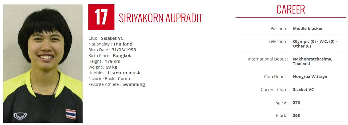 หมายเลข 17 สิริยากร อุปดิษฐ์ อายุ 17 ปี สูง 179 cm MB