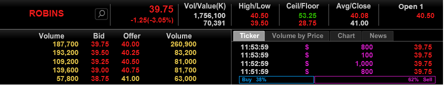 ดอย ROBINS 50 ปลายๆ เกือบๆ 60 ปัจจุบันราคาหลุด 40 แล้ว อนาคตมีโอกาสได้คืนมั๊ยครับ ธุรกิจของ ROBINS ขาลงแล้วหรือครับ