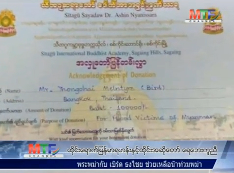 ถ้ามองเรื่องตัวเงินอาจจะไม่มาก 100,000 บาท ที่พี่เบิร์ดบริจาคส่วนตัวผ่านไปยังคนพม่าที่รู้จัก เพื่อไปช่วยคนพม่าที่ประสบภัยน้ำท่วมที่นั่น ซึ่งภายหลังการบริจาคจะมีใบคล้ายๆใบอนุโมทนาบัตรของไทยเวลาทำบุญที่วัด มีคนพม่าถ่ายรูปและชื่นชมปากต่อปากส่งต่อกัน ตอนนี้ใบอนุโมทนานั้นกลายเป็นข่าวออกสื่อโทรทัศน์ดังที่นั่นไปแล้ว