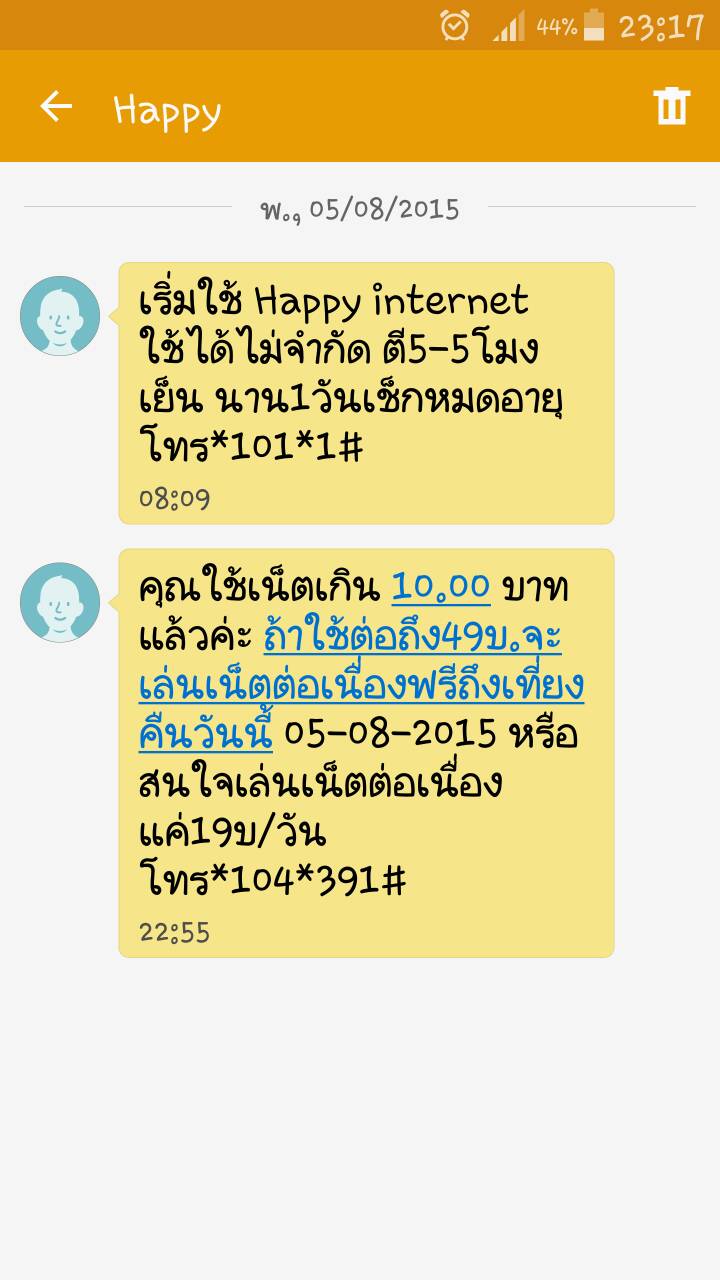กำลังนอนเคลิ้มๆอยู่ เสียงข้อความก็ดังขึ้นมา เอ!ใครส่งอะไรมาฟระ ดูเวลามันจะ 5ทุ่มแล้ว พอเปิดดูเท่านั้นหายง่วงเลย เฮ้อ!!กรูหลับแล้วนี่หวา แล้วไปเล่นเนตตอนไหนวะ จัดการโทรหาCC. เลย ได้คำตอบเดิมๆว่าสมาร์โฟนมันแอบต่อเนตเองบลาๆๆๆๆ ก็เลยบ่นไปชุดนึงแล้วก็วางสายไป สุดท้ายวังวนเดิมๆเรื่องหักเงินค่าเนตก็วนเวียนกลับมาอีกครั้ง เดือนนี้คงเป็นเดือนสุดท้ายที่จะใช้ Dtacแล้ว สิ้นเดือนคงย้ายตามเบอร์อื่นๆไปค่ายอื่นต่อไป
