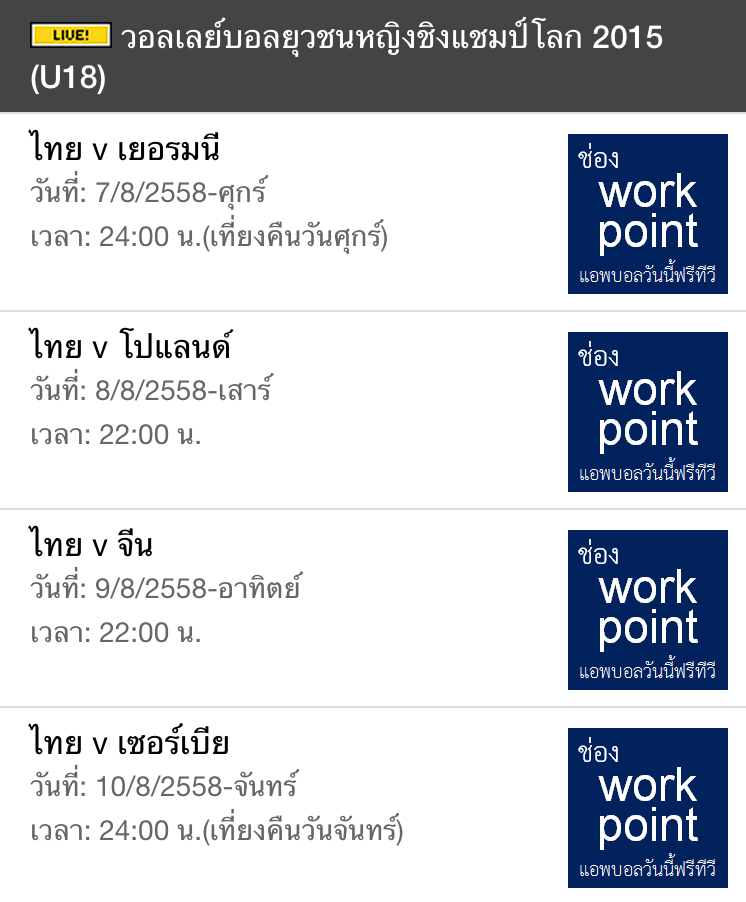 วอลเลย์บอลหญิงU18ชิงแชมป์โลก ฟรีทีวีถ่ายทอดสด