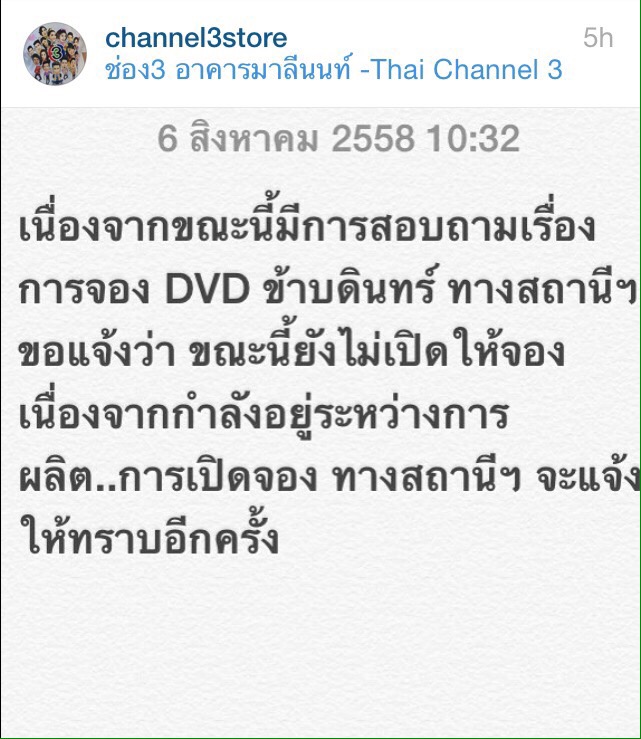จากที่มีข่าวว่า DVD Boxset ข้าบดินทร์ เปิดให้จองแล้วนั้น ขณะนี้ ทาง Channel3store ได้อัพเดท ณ ตอนนี้ว่า ยังไม่เปิดจองอย่างเป็นทางการ