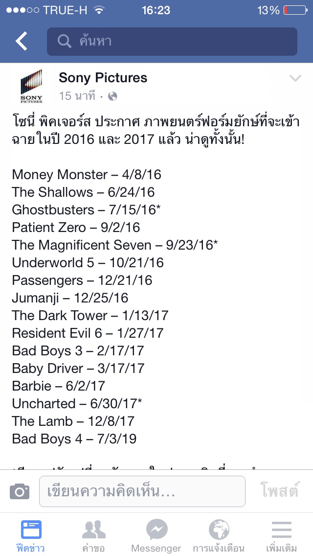 นอกจากนี้ยังมี uncharted, the dark tower, Money monster และทัพหนังอีกแยะ