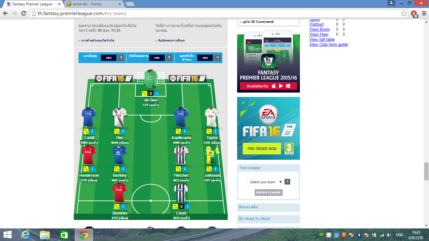 มาแชร์ fantasy bpl นัดแรกกันดีกว่าครับ