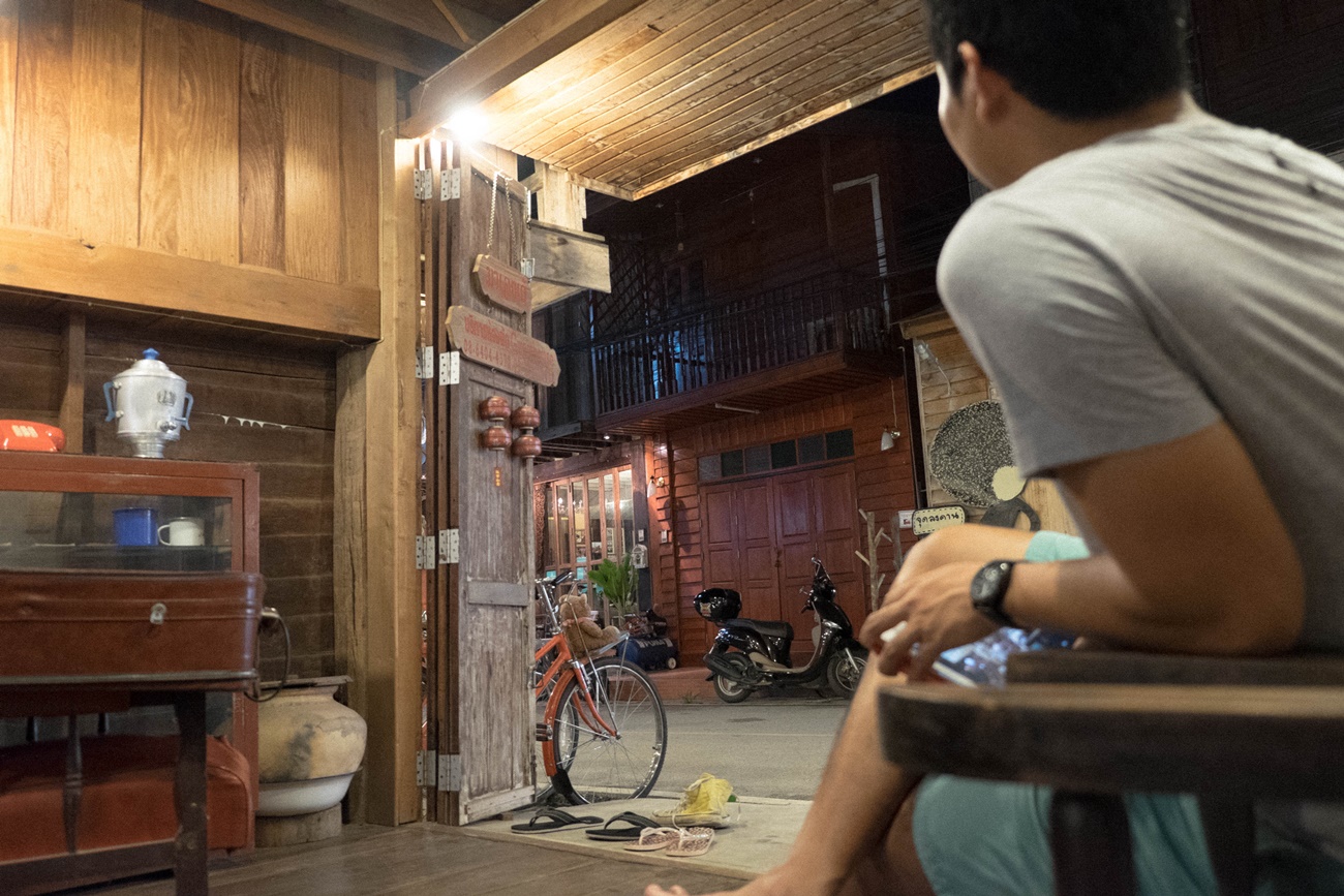 เนื่องจากที่พักอยู่แทบจะติดถนนคนเดิน ตอนค่ำก็นั่งดื่มด่ำบรรยากาศ พร้อมชวนเพื่อนข้างห้องคุยกันอย่างออกรสออกชาติ