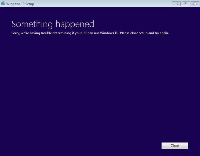 เราลอง Upgrade Windows 10 แต่ว่าไม่ผ่านขึ้น Error ตามรูปด้านล่าง