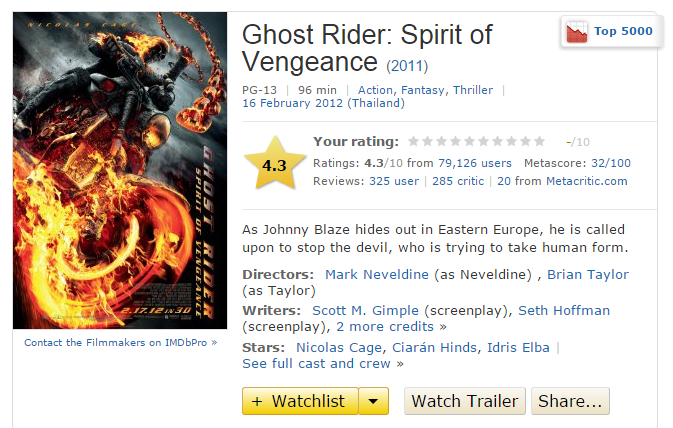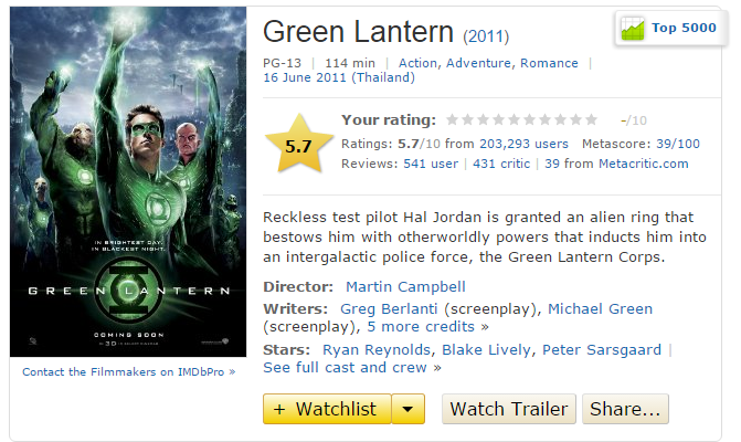 IMDB ผ่าน Green lantern ก้าวข้าม Ghost Rider 2 มาได้แล้ว