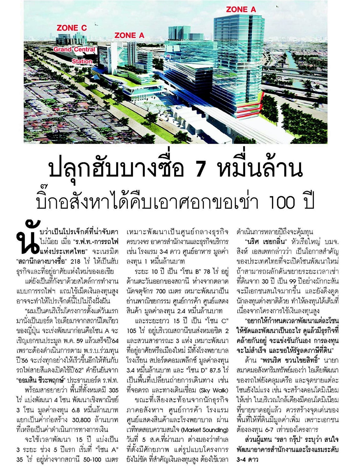ปลุก ฮับบางซื่อ 7 หมื่นล้าน / บิ๊กอสังหาได้คืบเอาศอก ขอเช่า 100 ปี