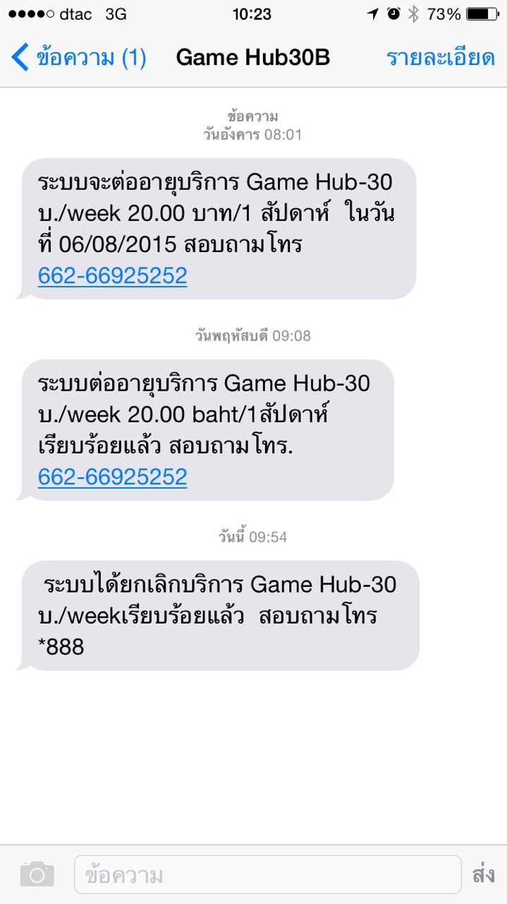 สอบถามครับ อยู่ดี ๆ เกมฮับเรียกเก็บค่าบริการอาทิตย์ละ 50 บาท
