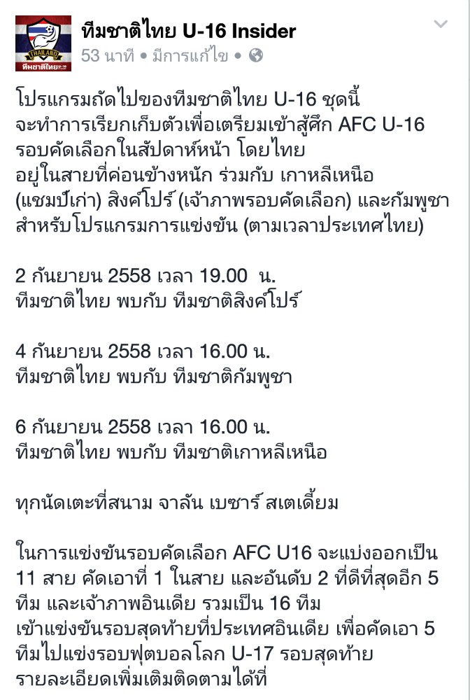 ปล.ขอบคุณเพจ ทีมชาติไทย U-16 Insider มากๆค่ะ