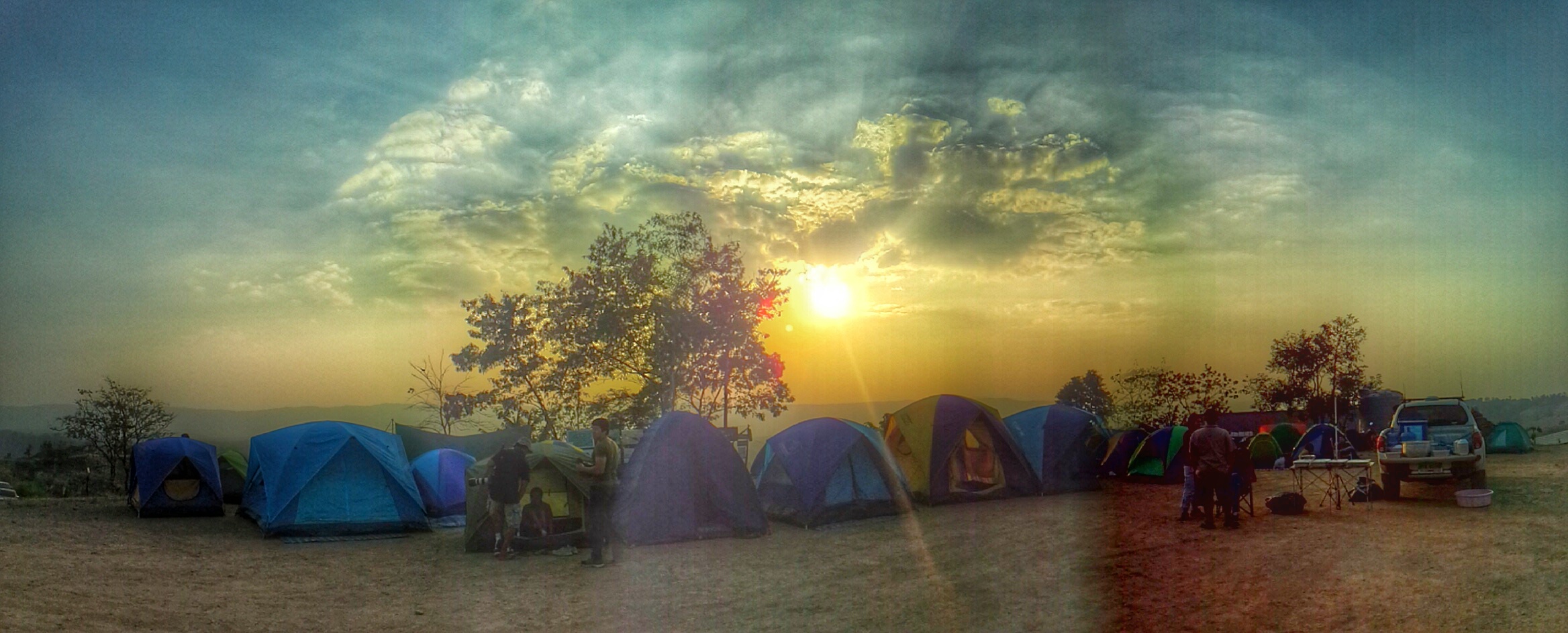 ภาพนี้เป็นภาพเต้นท์บนยอดเขากระโจมครับ ปลายปี 2014 กำลังหนาว อากาศกำลังดีครับ ได้ไปช่วยกลุ่มคนฅ่ายสายแข็งทำฝายที่ป่าต้นน้ำบนยอดเขาที่สวนผึ้งครับ ได้ถ่ายภาพหมู่ร่วมกันบจุดชมวิวยอดเขากระโจมด้วยครับ สวยงามมากๆ