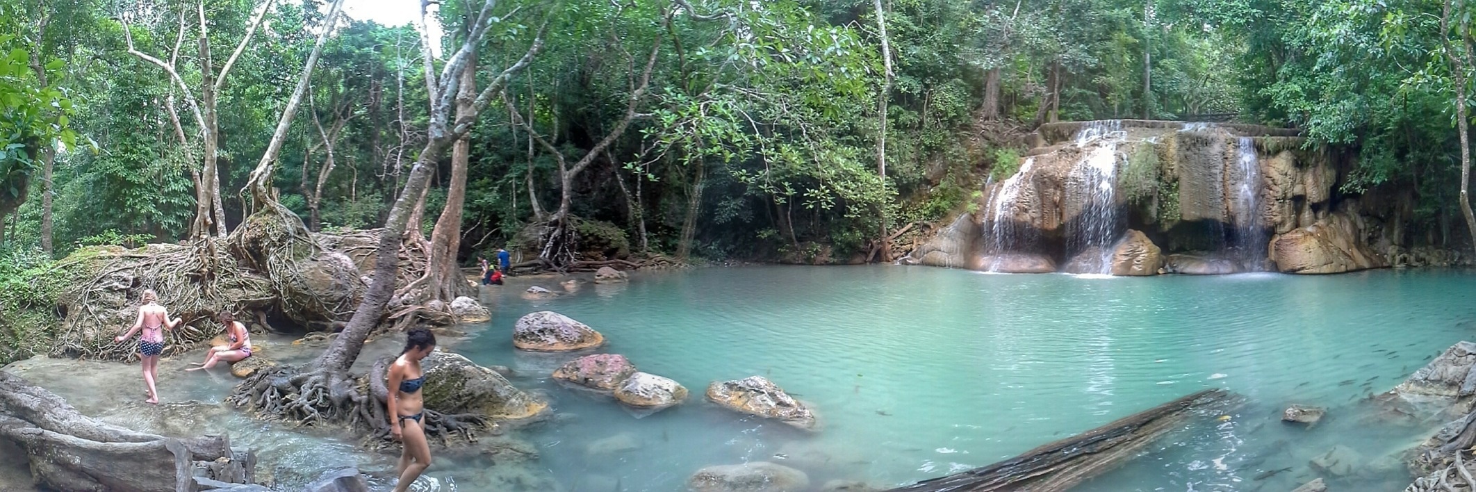 ภาพนี้เป็นวิวบรรยากาศน้ำตกเอราวัณครับ ชั้นที่ 2 ไปมาเมื่อปลายเดือนกรกฏา ปี 2015 นี้เองครับ บรรยากาศดูสดชื่น แม้น้ำจะน้อยไปนิด แต่ได้ว่ายน้ำก็ชื่นใจแล้วครับ