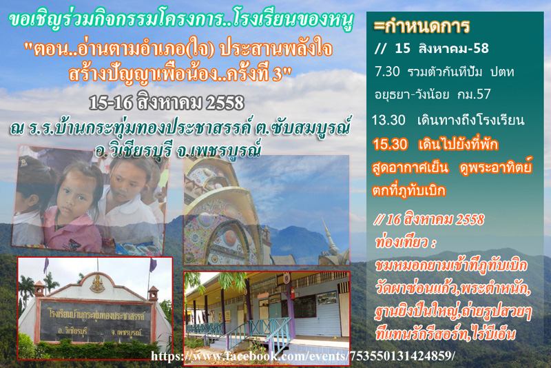 กับโครงการ “โรงเรียนของหนู..ตอน..อ่านตามอำเภอ(ใจ) ประสานพลังใจ สร้างปัญญาเพื่อน้อง..ครั้งที่ 3”