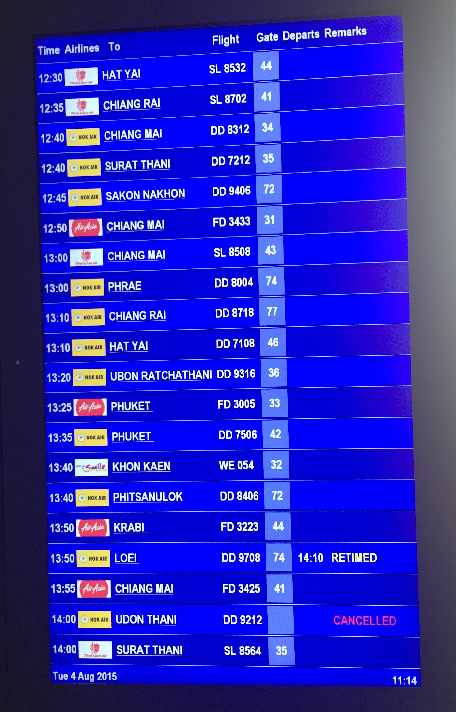 เราไปเที่ยวเชียงใหม่ทั้งหมด 4 วัน 3 คืน เดินทางวันที่ 4 สิงหาคม 2558 โดยน้องหางแดง จะบอกว่าเราจองผ่าน Internet เช็คอินผ่านมือถือ โดยไม่ต้องปริ้นเอกสารใดๆ ทั้งสิ้น อ้อ...แต่ตอนจ่ายตังค์ต้องปริ้นใบจ่ายตังค์ไปชำระนะคะ เราชำระผ่านเคาน์เตอร์เซอวิสค่ะ พอจ่ายตังค์สถานะการชำระเงินก็ยืนยัน หลังจากนั้นเราก็ทำการเช็คอินผ่านมือถือได้เลยค่ะ ง่ายมั๊กมัก อิอิ เราจองรอบ Flight 13.55 น. ค่ะ เราไม่รีบร้อนค่ะ เลยจองรอบนี้ อิอิ ป่าวหรอก พลาดรอบ 10.00 น. ต่างหาก เหอะๆๆๆ เราเดินทางไปถึงสนามบิน 12.00 น. ไปนั่งรอขึ้นเครื่องในเกตได้เลยไม่ต้องเข้าเคาน์เตอร์เช็คอิน แค่ยื่นโทรศัพท์กับบัตร ปชช ให้กับเจ้าหน้าที่ตรงประตูตรวจ และก็ตรวจสัมภาระที่ติดตัวมา แล้วก็เข้าเกตได้เลย แต่เกตของเราอยู่ไกลมาก เกตสุดท้ายเลย ส่วนมากเราจะได้รอขึ้นเครื่องที่เกตแรก แต่อันนี้เดินไกลเลยคร่า อ้อ จะบอกว่าถ้าเราเช็คอินผ่านมือถือ จะไม่ได้บอกเกตนะคะ เราต้องไปดูที่หน้าจอ Flight เองค่ะ พอดูแล้วเราก็เดินเข้าไปรอที่เกตได้เลยค่ะ ^_^
