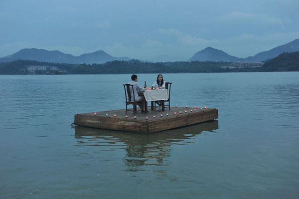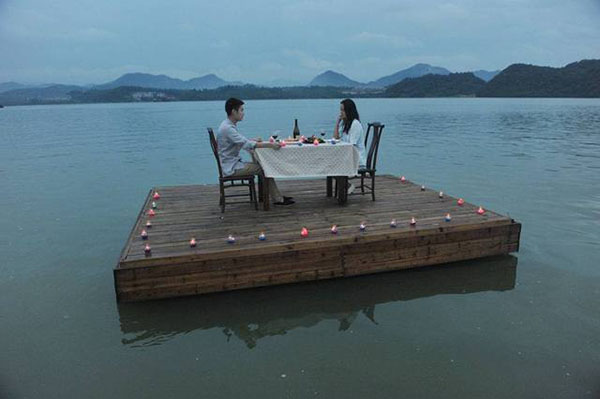เว็บไซต์เซี่ยงไฮ้อิสต์ วันที่ 9 สิงหาคม 2558 เผยภาพภัตตาคารแห่งหนึ่งซึ่งมีความพิเศษที่แตกต่างจากที่อื่น คือ มีโป๊ะลอยน้ำส่วนตัวให้คู่รักได้มาสัมผัสประสบการณ์การทานมื้อค่ำเหนือทะเลสาบสวยงามที่สุดแสนจะโรแมนติกนี้ ได้นานตามความสบายใจตราบใดที่ยังไม่อยากเข้าห้องน้ำ