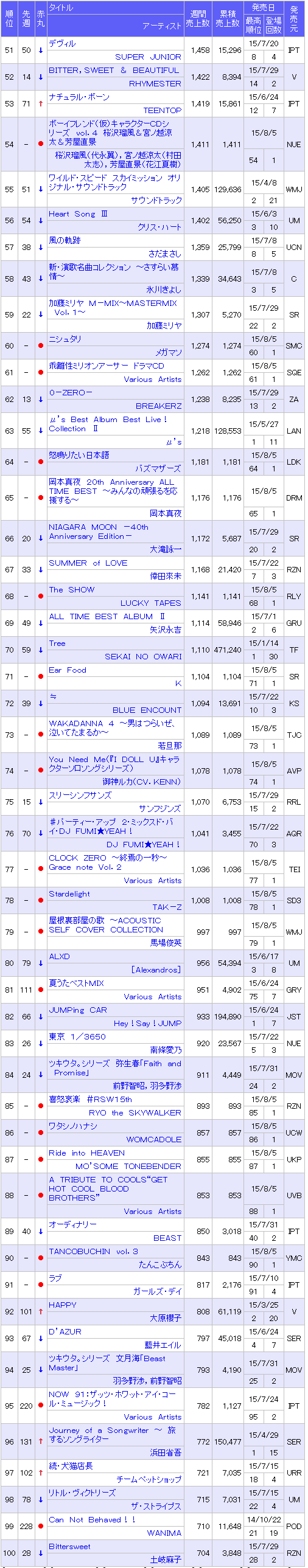 [J-Music] DREAMS COME TRUE , 関ジャニ∞ , 嵐 TOP Oricon weekly Chart!
