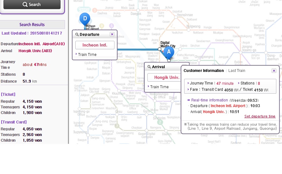 แบบนี้ เรานั่งต่อเดียวจากสนามบิน ลงที่ Hongik ได้เลย ไม่ต้องไปต่อรถอีกใช่ไหมคะ