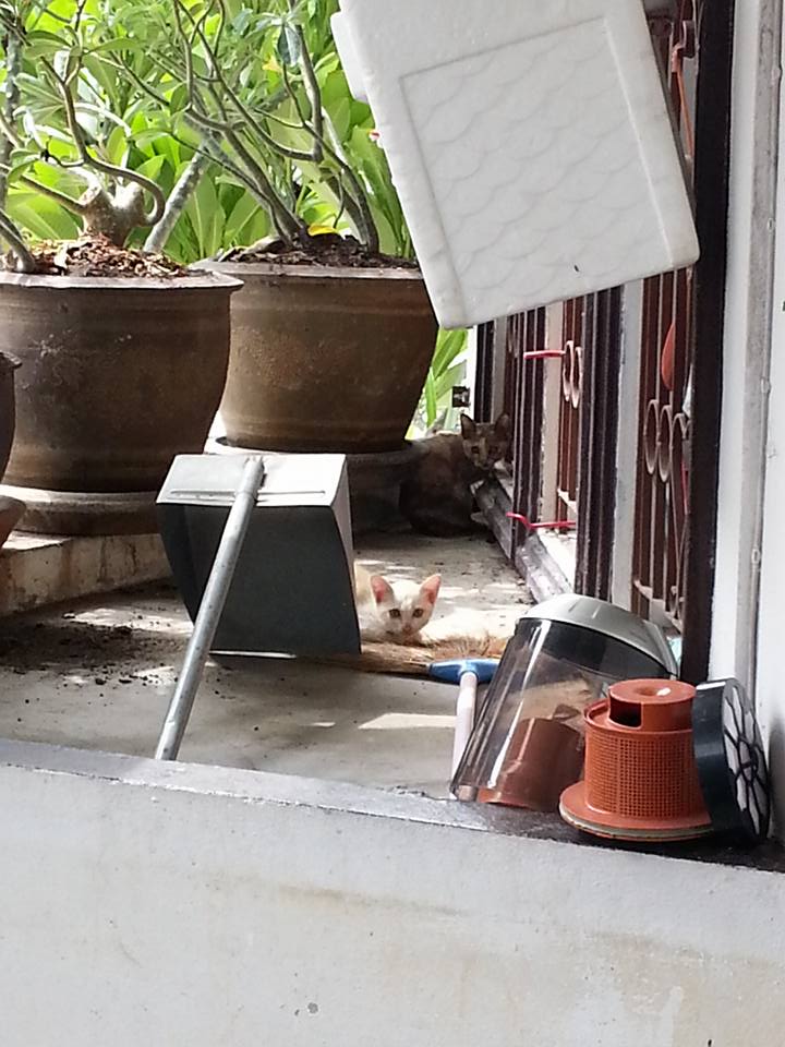 เจ้าหมาแมวพวกนี้มันก็อาศัยอยู่ริมถนนหน้าบ้านหลังนั้นแหละ เดินไปเดินมาบ้าง เดินมาขี้หน้าบ้านผมบ้าง ส่วนแมวนี่หนักเลย มันปีนได้มันเข้ามาในรั้วบ้านผม บางวันเปิดประตูบ้านทิ้งไว้