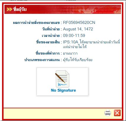 พัสดุยังไม่ได้รับแต่สถานะขึ้นว่า 'ผู้รับได้รับเรียบร้อย'