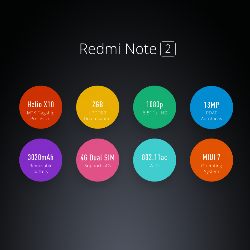 Xiaomi เปิดตัวสมาร์ทโฟนระดับกลางสุดหรู Redmi Note 2 และ Redmi Note 2 Prime ในงาน MIUI 7 ที่จัดขึ้นที่จีน โดยมาพร้อมกับ หน้าจอ 5.5 นิ้ว หน่วยประมวลผล MTK Helio X10 8 Core กล้อง 13 ล้านพิกเซล และ แบตฯ 3060mAh ในราคาเริ่มต้นที่ 4,500 บาท ไปจนถึง 5,500 บาทเท่านั้น