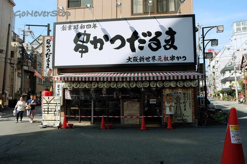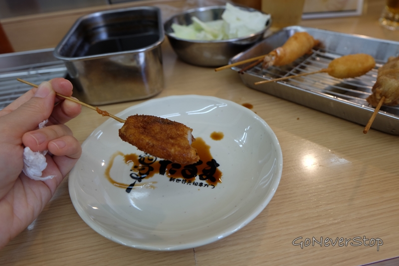 บางอย่างก็ไม่ได้ถ่ายรูปมา มาเริ่มกันเลยแถว Shinsekai จะมีร้านของทอดเสียบไม้เยอะไปหมด เราเลือกกินร้านนี้ Ganso Kushikatsu Daruma สัญลักษณ์เป็นคุณลุงหน้าดุ รู้สึกว่าตอนนี้มีมาเปิดสาขาในกรุงเทพด้วย